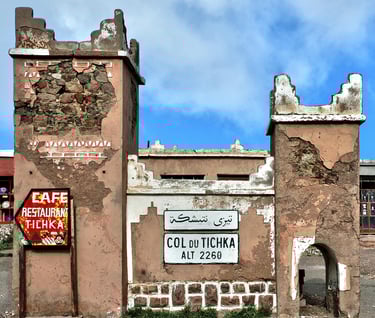 South of Ouarzazate, we pass through the captivating Tizi n' Tinififft mountain pass before following the course of the Draa, Morocco's longest river, once the main source of water for the south but now dry for much of the year after the construction of the Ouarzazate dam in the 1970s.