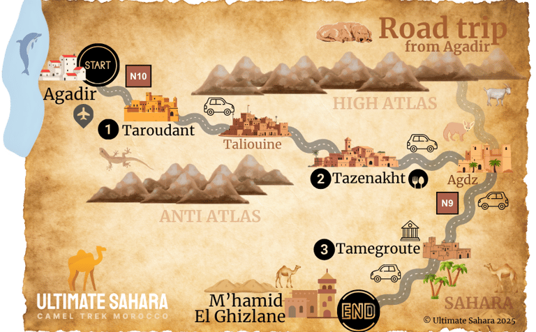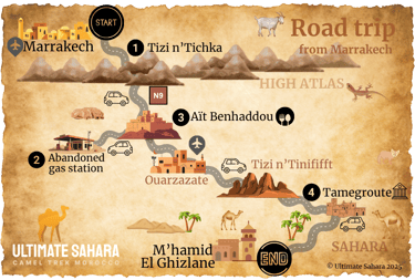 Pick-up from a location of your choice in Marrakech or Agadir (pick-up from other cities available on request)
