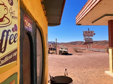 Having passed through the mountains, we head towards the city of Ouarzazate, home of the world famous Atlas Studios. We make a brief diversion from the main N9 to the intriguing abandoned gas station used as a filming location for the 2006 horror film The Hills Have Eyes. Pause for pictures at this unique slice of America in the Moroccan wilderness.