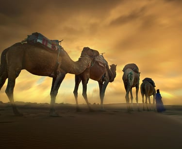 Use of the camels and the services of their expert handlers for the first day of the trek